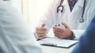 主治医に深く頭を下げ、