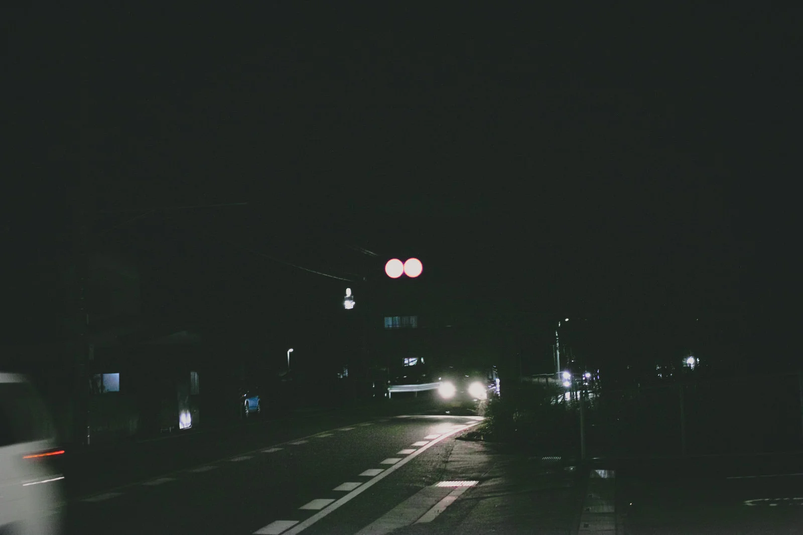 真っ暗で街灯も消えそうな村の中。